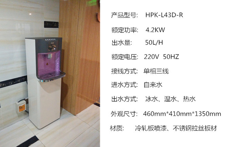 3、一體式飲水設(shè)備,不銹鋼外觀,安裝方便,省時(shí)。