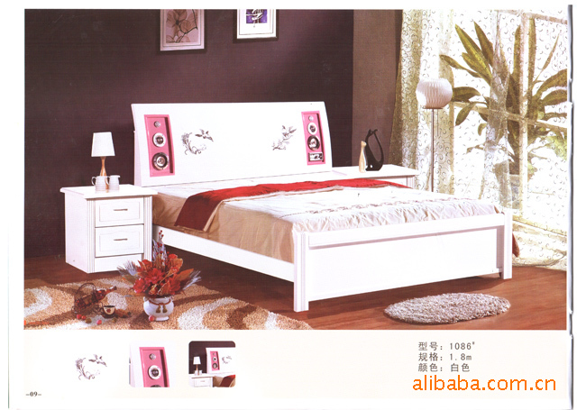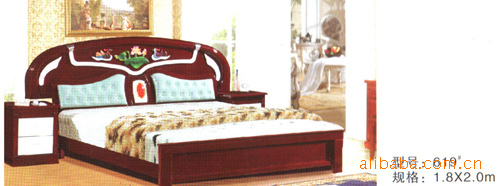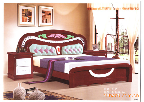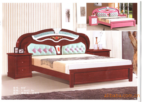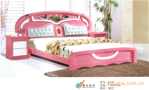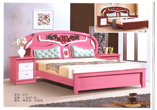 南康康裕家具 616#粉紅色/紅棕色實(shí)木床 批發(fā) 支持混批