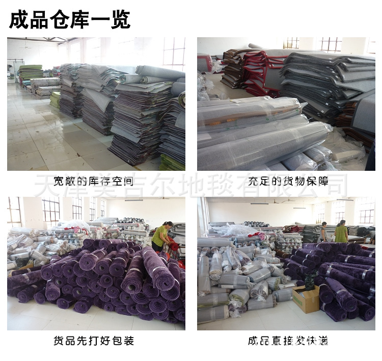 2、因為地毯是卷裝打包,故在您剛收到地毯時,會覺有些蓬亂,您只需用力抖動就可以使地毯恢復(fù)平整順滑。