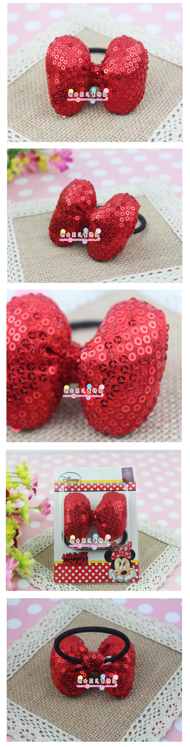 批發(fā)正品迪士尼米妮發(fā)繩鑲亮片蝴蝶結(jié)發(fā)繩發(fā)圈兒童飾品DC00553
