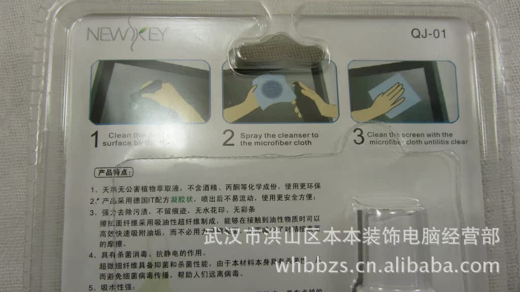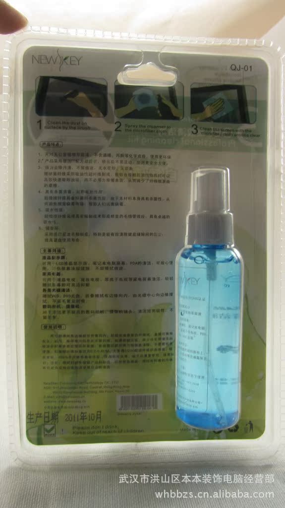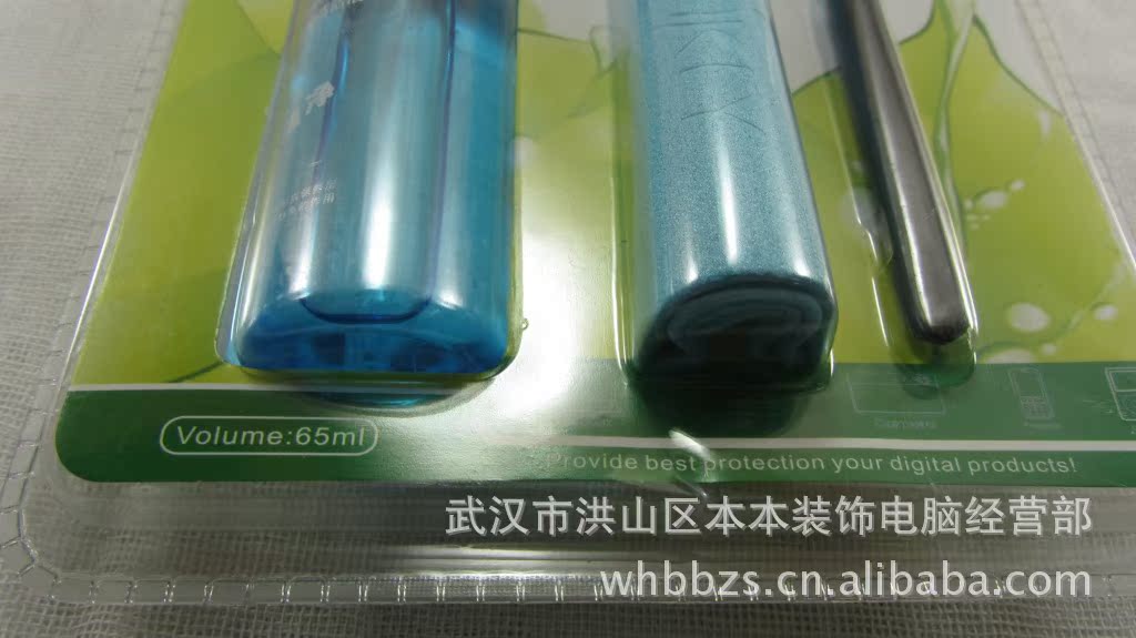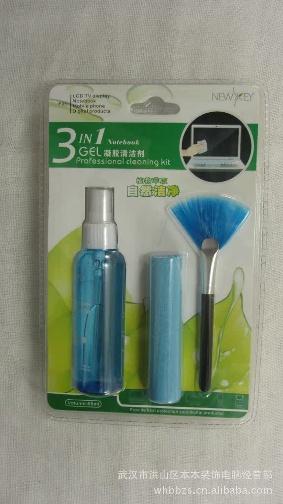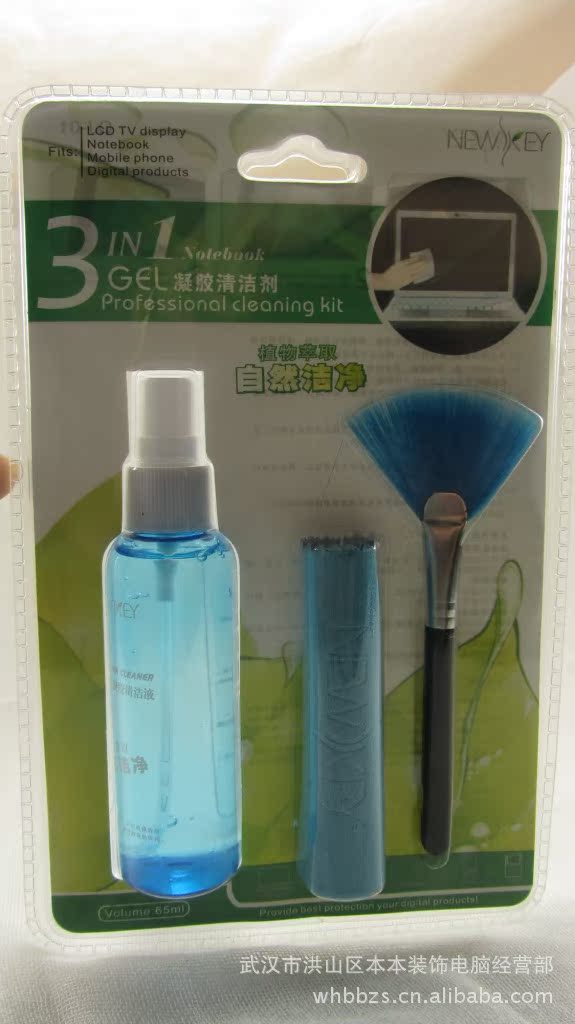 傳統(tǒng)的三件套,包括一個(gè)清潔布,一個(gè)清潔刷,一瓶清潔液.說(shuō)起來(lái)感覺(jué)和普通的亮潔三件套清潔液沒(méi)有什么分別的樣子,其實(shí)仔細(xì)觀察你會(huì)發(fā)現(xiàn),清潔布是使用的超細(xì)纖維鹿皮絨布,我們平時(shí)貼膜全部用的這種,握在手里感覺(jué)得到,比一般的清潔布要軟,給顧客清潔屏幕一點(diǎn)不擔(dān)心,刷子也是超柔軟的刷毛,我曾經(jīng)用這小刷子在自己手背上刷著試試,真的很柔軟.清潔液是去污能力很強(qiáng)的凝膠狀清潔液.一會(huì)上圖片你仔細(xì)看看就知道我說(shuō)的這些了.