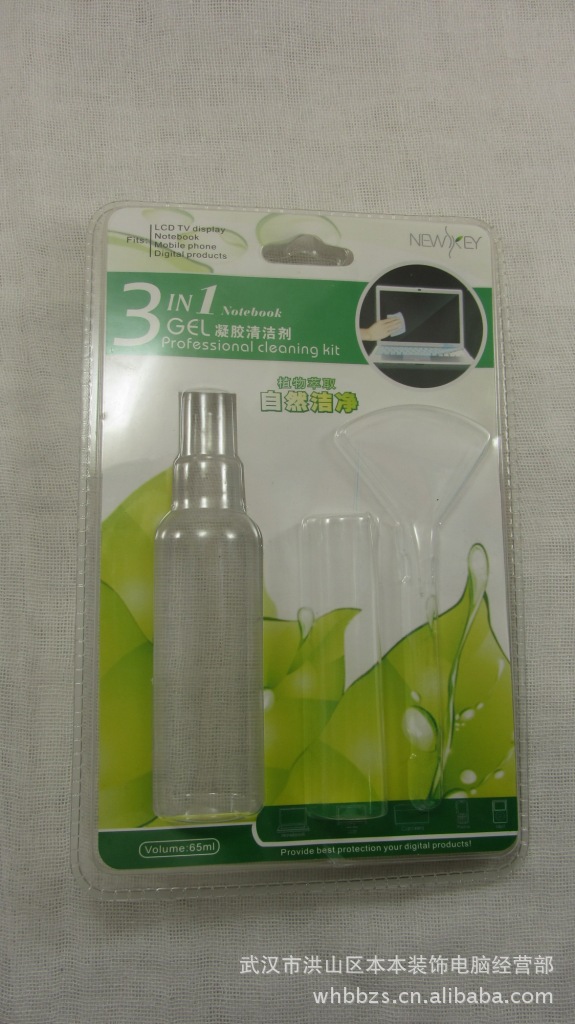 凝膠狀清潔液,這種清潔液去污能力很強(qiáng),我自己曾經(jīng)做過(guò)試驗(yàn),一塊用的很臟的清潔布,噴了一些這種凝膠狀的清潔液,揉了揉,正準(zhǔn)備去沖水洗,發(fā)現(xiàn)原來(lái)很臟的布居然很干凈了,可見(jiàn)去污能力很強(qiáng)的,再用凈水沖凈,整塊布像新的一樣了.這個(gè)沒(méi)有夸張,不信的話到時(shí)用這個(gè)產(chǎn)品試一下就知道我所言非虛.