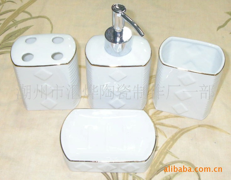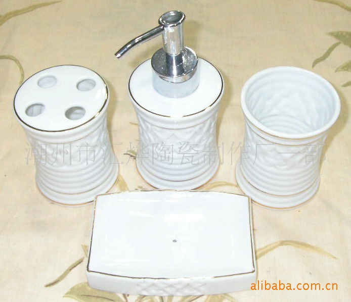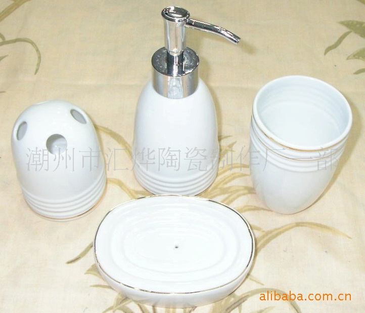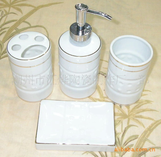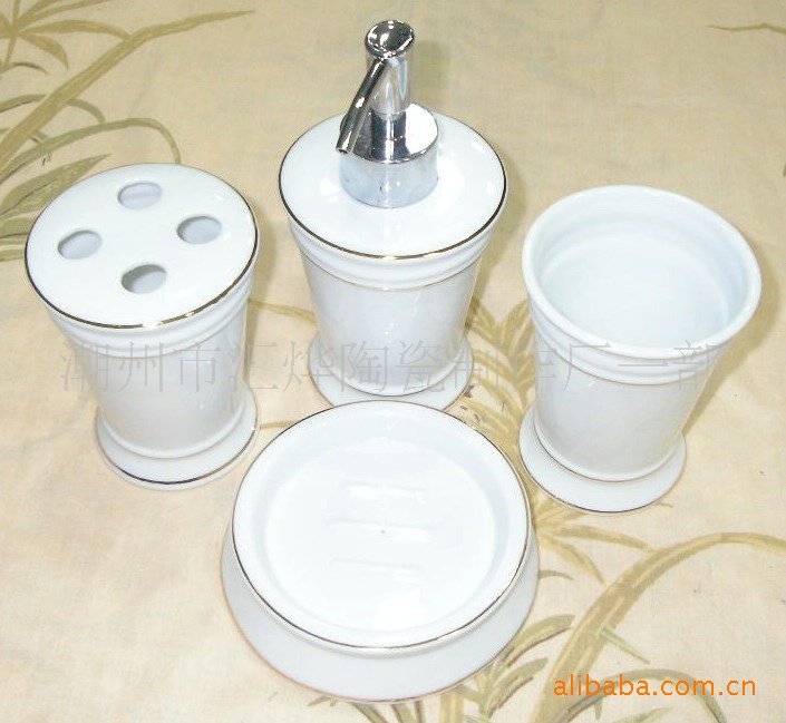 供應(yīng)陶瓷加金潔具/噴瓶/口杯/牙插/皂碟