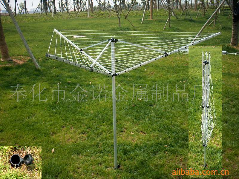 傘形的晾衣架,可折疊,戶外用,鋁合金制,總高1.8m,繩長50m(或40m,60m,20m,17m),輕便,耐用。
