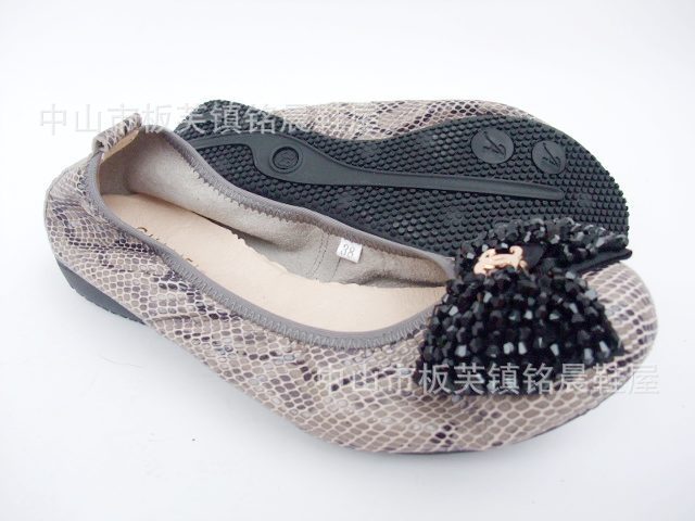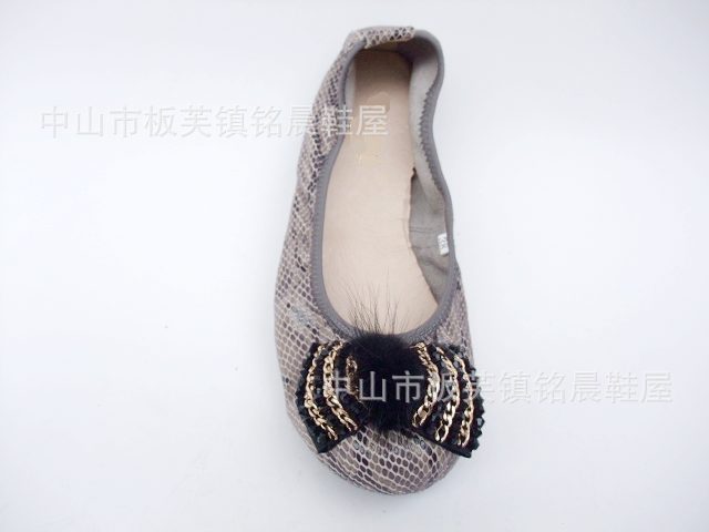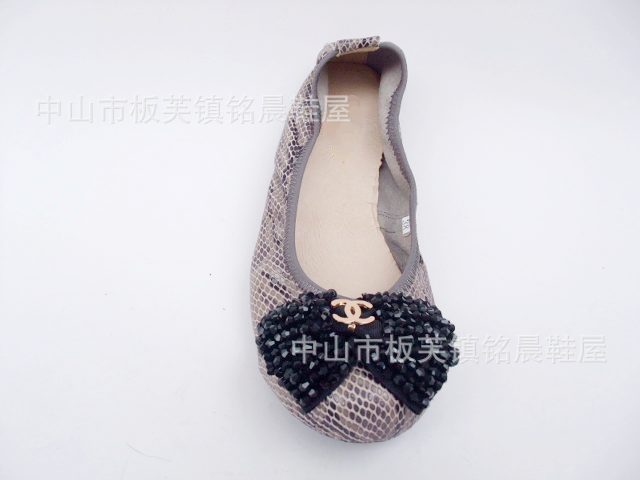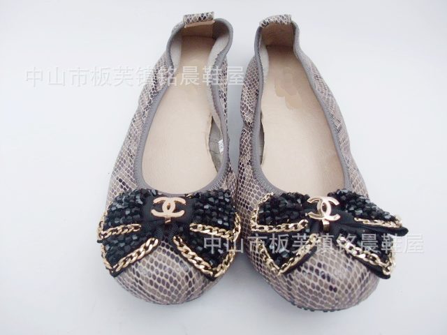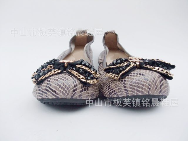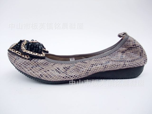 此款鞋子鞋花采用優(yōu)質(zhì)玻璃鉆和銅質(zhì)五金鏈條,21元一尺的牛皮,很顯檔次.