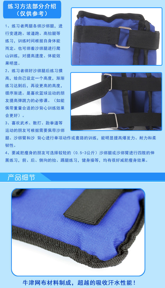 【品名】:負(fù)重沙袋綁手腕沙袋河沙綁腿沙綁腿沙包速度訓(xùn)練跑步沙袋