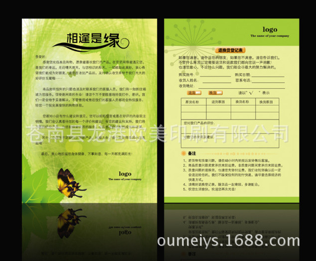名稱:售后保障卡、售后服務卡