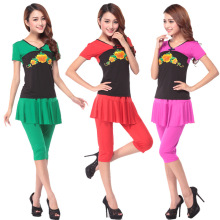 夏季新款廣場舞蹈裝短袖牡丹印花女士七分裙褲套裝演出跳舞服批發(fā)52.00