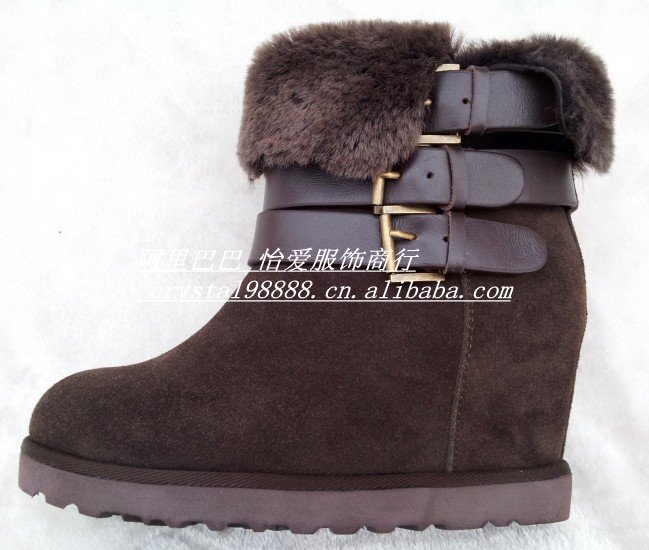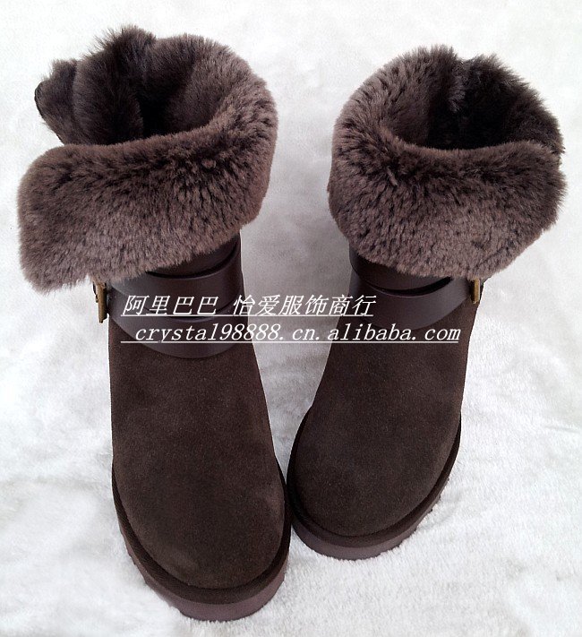 材質(zhì):腳面到腳后跟處是牛反絨,也就是磨砂牛皮!但是腳面和腳底都有羊毛的,不用擔心冬天凍著腳丫啦~靴筒處羊皮毛一體!!