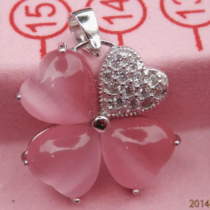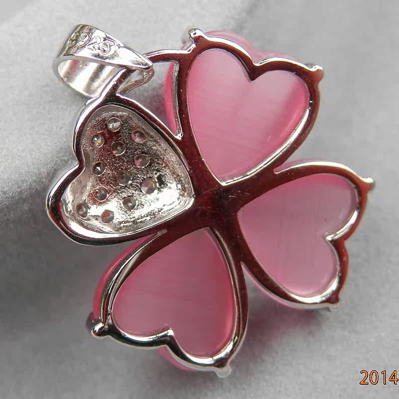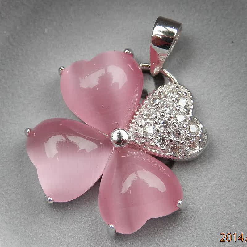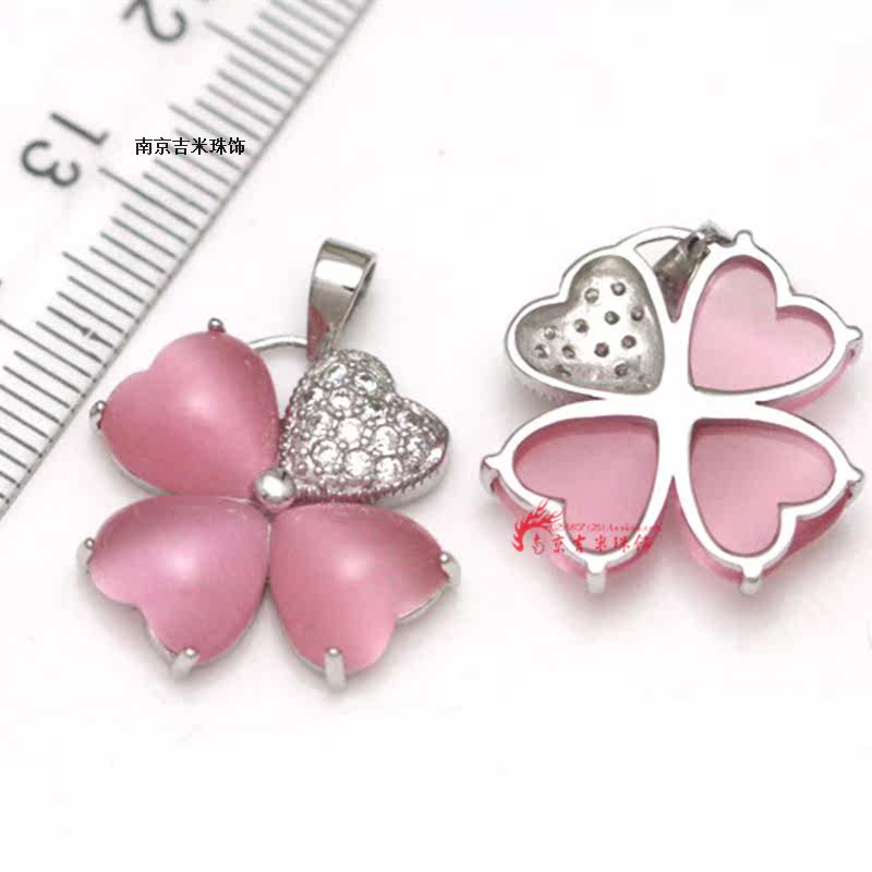 特點:達標925純銀微鑲 防過敏 防氧化 閃亮貓眼石 四葉草 可愛~送人或自戴皆可~