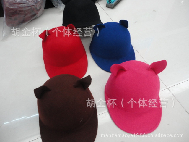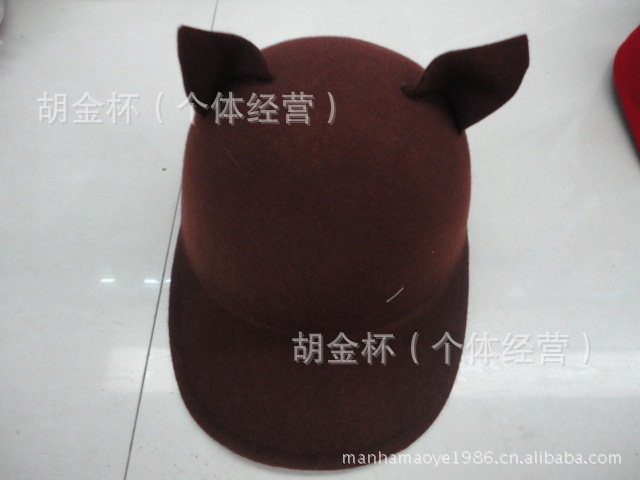 『曼哈帽業(yè)』廠家直銷高檔純羊毛女士帽耳朵氈帽秋冬呢帽子