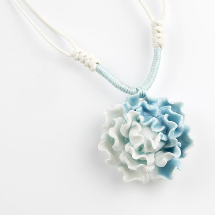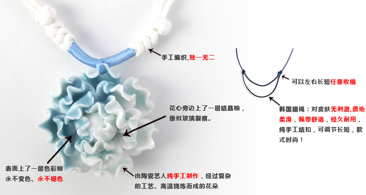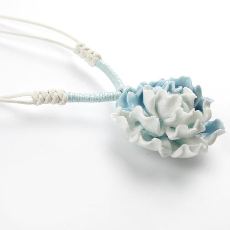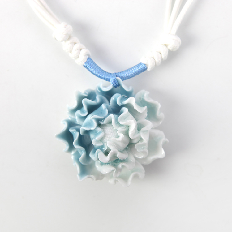 中國風(fēng)陶瓷飾品批發(fā) 優(yōu)雅古典 手工制作陶瓷項鏈 女生 藍白牡丹