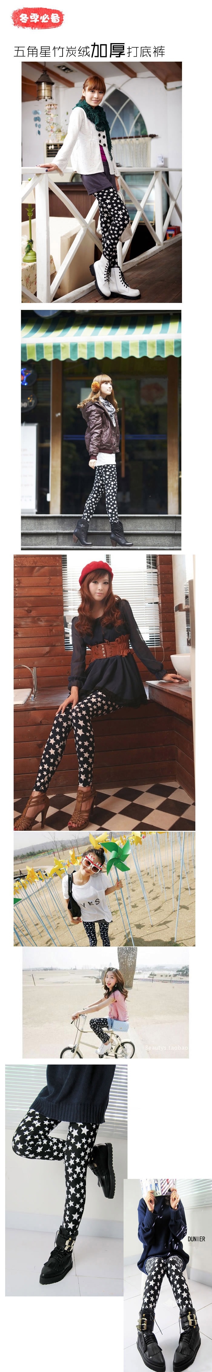 韓版冬季新款 五角星加厚加絨九分褲 打底褲 星星保暖褲