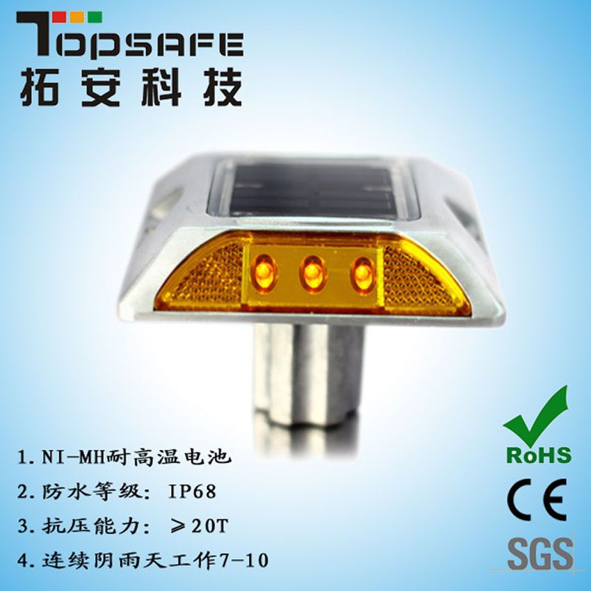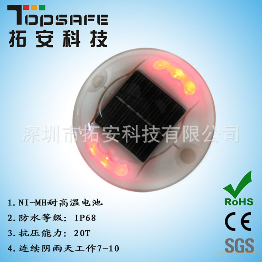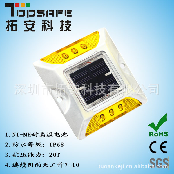 3、極強(qiáng)防水能力,太陽能電池板、電子元件及LED通過特殊的技術(shù)密封在殼體 內(nèi), 可在長(zhǎng)期積水路面使用。