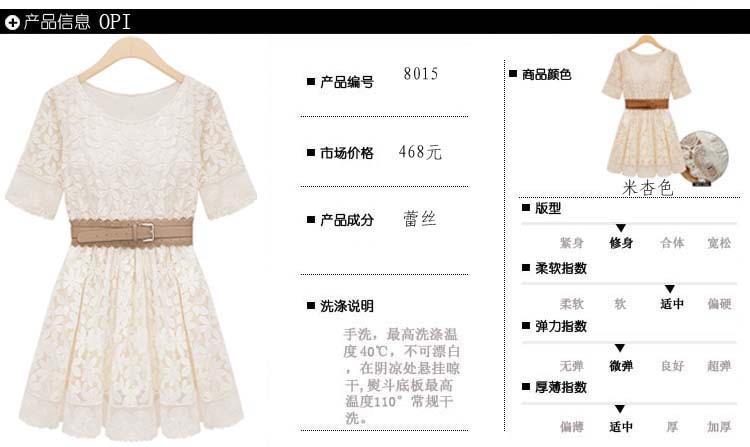 很不錯的蕾絲連衣裙 夏季必備 。送腰帶