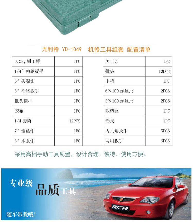 外觀展示產(chǎn)品名稱:隨車組合工具產(chǎn)品品牌:尤利特 凌拓產(chǎn)品型號:YD-1049