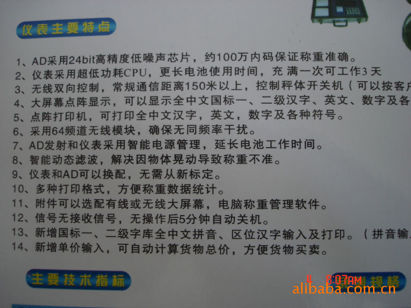 無(wú)線數(shù)傳式電子吊秤:全剛結(jié)構(gòu)外殼,美觀、堅(jiān)固。良好的抗電磁干擾性能,可直接用于電磁吸盤(pán)上。良好的動(dòng)態(tài)性能,即使在較強(qiáng)的晃動(dòng)下也能迅速獲得穩(wěn)定準(zhǔn)確的稱重結(jié)果。可選配高溫隔熱和防腐型。有箱式、便攜式多種儀表可選,滿足用戶各種需求。無(wú)線傳輸距離大于100米。