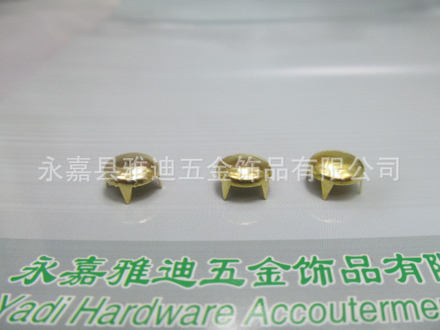 永嘉縣雅迪五金飾品有限公司是朋克尖釘;合金裝飾扣、合金鈕扣、輕鈕扣、四合扣、工字扣、五爪扣、兩排銅鈕扣、拉鏈頭、繩制.吊鐘、鉆釘.四爪釘、背帶夾.尾夾、氣眼.鐵絲扣、牛仔褲撞釘?shù)犬a品專業(yè)生產加工的有限責任公司,
