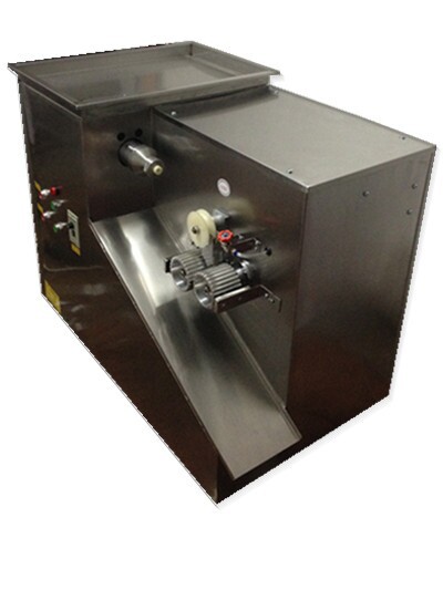 將混合或煉制好的藥料送入料倉內(nèi),喂料葉片內(nèi)旋,在螺旋推進(jìn)器的擠壓下,制出直徑相同的藥條,經(jīng)過導(dǎo)輪槽,順條器同步進(jìn)入制丸刀輪中,經(jīng)過雙搓輪快速切磋,制成大小均勻的藥丸。