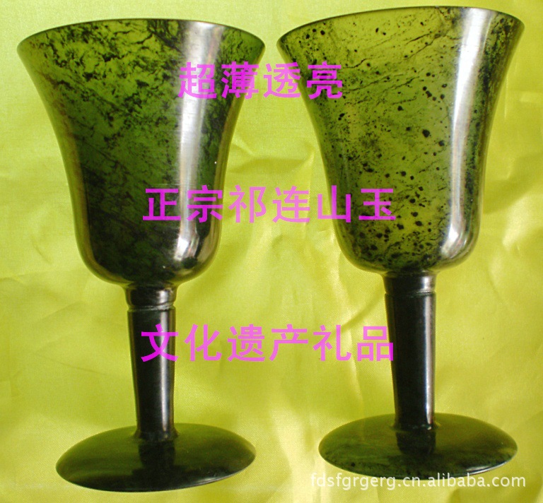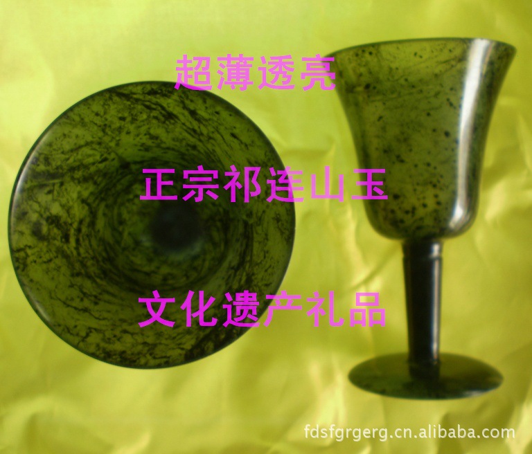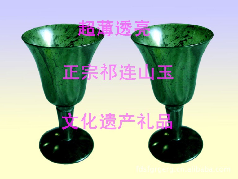 小高腳杯一套8個(gè),帶盒。 敦煌夜光杯又名陽(yáng)關(guān)玉杯,它以祁連山所產(chǎn)優(yōu)質(zhì)墨玉、黃玉和碧玉為原料,經(jīng)過(guò)24道工序精雕細(xì)刻而成,之所以成為夜光杯是因?yàn)樵诤诎档沫h(huán)境下它會(huì)發(fā)出淡淡的光,是很名貴的飲酒器皿。