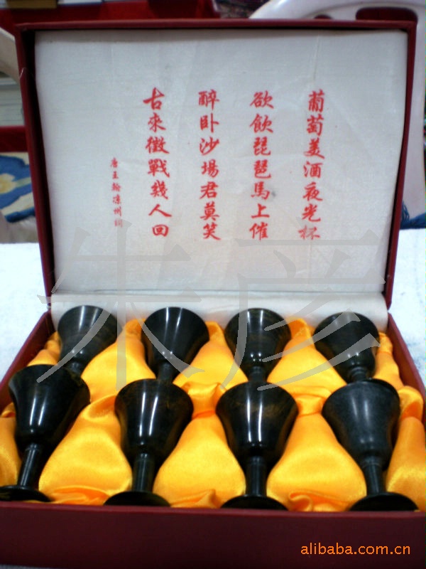 據(jù)西漢東方朔《海內(nèi)十洲記》載:周穆王姬滿(mǎn)應(yīng)西王母之邀赴瑤池盛會(huì),席間,西王母饋贈(zèng)姬滿(mǎn)一只碧光粼粼的酒杯,名曰"夜光常滿(mǎn)杯"。周穆王如獲至寶,愛(ài)不釋手,從此夜光杯名揚(yáng)千古。 夜光杯質(zhì)地光潔,色澤斑斕,宛如翡翠,倒入美酒,酒色晶瑩澄碧。尤其皓月映射,清澈的玉液透過(guò)薄如蛋殼的杯壁熠熠發(fā)光。唐人王翰詩(shī)云"葡萄美酒夜光杯",詩(shī)以杯出名,杯因詩(shī)增輝。王瀚的這句詩(shī)一語(yǔ)道破天機(jī),所謂紅粉配佳人,寶劍贈(zèng)英雄,葡萄美酒當(dāng)然要用夜光杯來(lái)品嘗了!