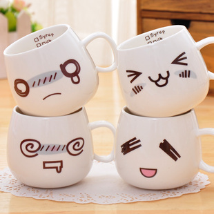 萌版可愛表情杯 陶瓷表情卡通水杯牛奶杯子早餐杯 創(chuàng)意情侶笑臉