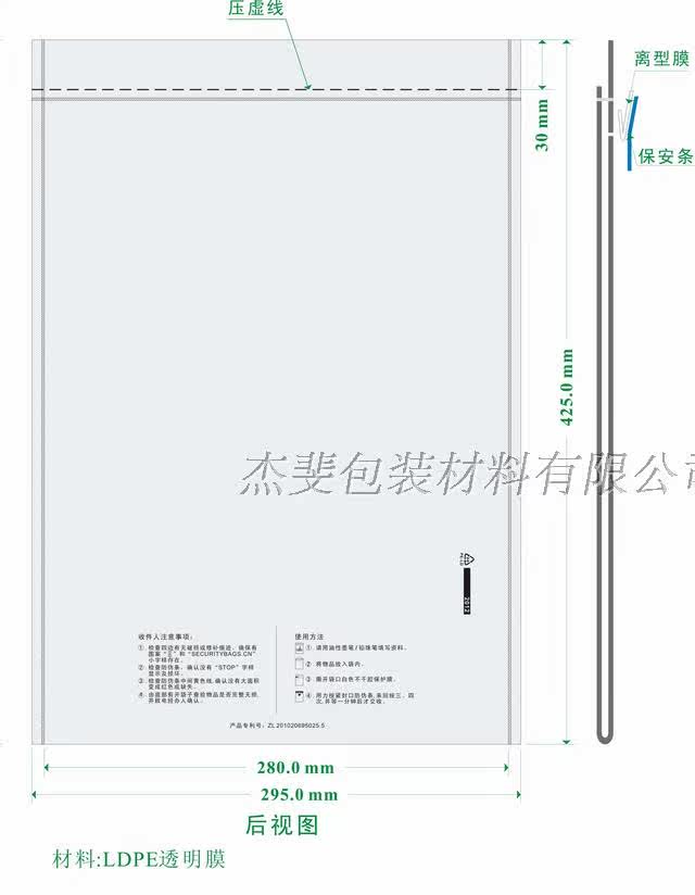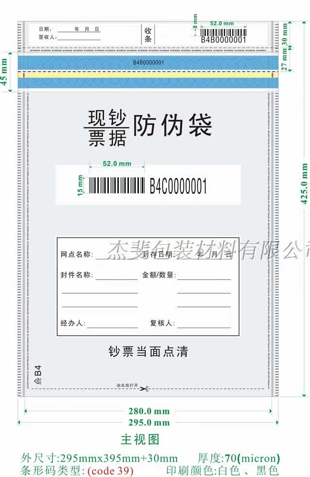 現(xiàn)金防偽袋, 票據(jù)防偽袋, 鈔券防偽包裝袋 , 295x395 30mm