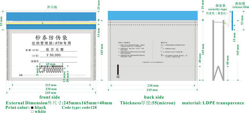 票據(jù)防偽袋, 防偽袋, 鈔券防偽包裝袋, 立體保安袋 現(xiàn)鈔防偽袋