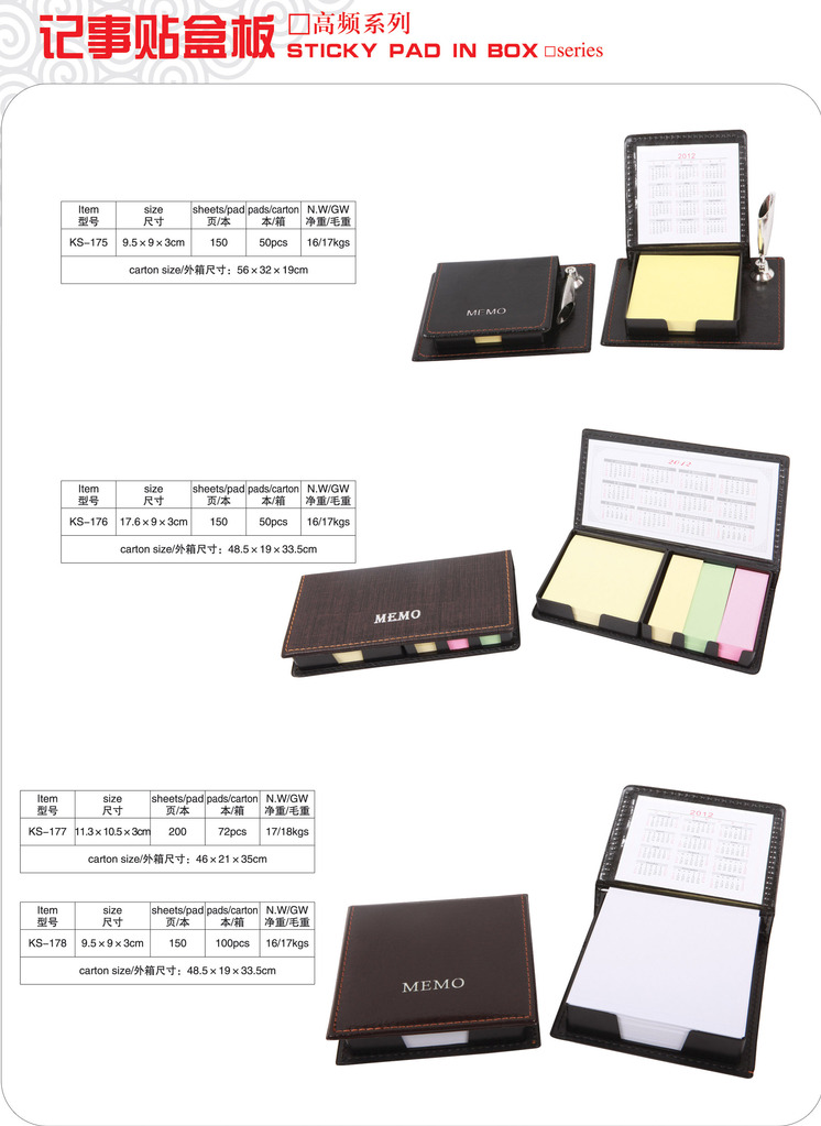 規(guī)格:148mm*88mm*21mm 內(nèi)芯:記事貼 標志:MEMO 包裝:OPP膜,普通紙箱,200只/箱