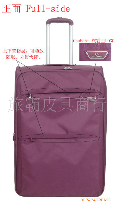 國(guó)際的品牌,市場(chǎng)的價(jià)格。進(jìn)口尼龍臺(tái)灣防水料,鋁合金拉桿,橡膠耐性拉倫,底板堅(jiān)固,是居家旅行,出差的必備之品。