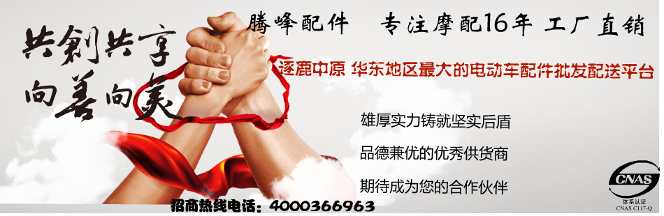 一.因?yàn)閷I(yè)所以與眾不同!可以助你開店,助你批發(fā),騰峰創(chuàng)業(yè)于1998年,主要從事電動(dòng)車、摩托車維修的小店鋪,也是合肥成功的小店鋪,10幾個(gè)徒弟,修車排隊(duì),業(yè)界聞名,2003年進(jìn)駐大地汽摩城,正式成立合肥騰峰電動(dòng)車配件商行,也是成功的經(jīng)銷商,騰峰客戶聯(lián)盟成員已逾5000家。企業(yè)榮譽(yù)舉不勝舉。詳見公司榮譽(yù)欄。