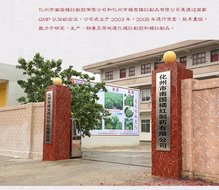 化州市橘寶橘紅制品有限公司成立于2003年,2008年進(jìn)行資金、技術(shù)重組,致力于研發(fā)、生產(chǎn)、銷售正宗地道化橘紅制藥和橘紅制品;公司科學(xué)化的管理,現(xiàn)代化的生產(chǎn)設(shè)備,優(yōu)質(zhì)的產(chǎn)品,在社會上贏得了良好的企業(yè)形象。