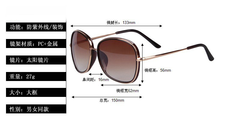 【廠家熱銷】批發(fā)女士修臉顯瘦金屬包邊太陽鏡 時(shí)尚潮流酷墨鏡
