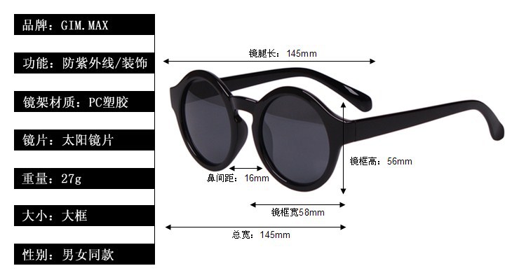 專業(yè)批發(fā)銷售凱倫沃克新款 圓形潮流男女太陽鏡 歐美街頭酷墨鏡