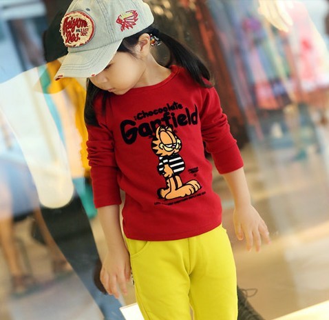 童裝批發(fā)2012冬款 工廠直批加菲貓加厚長袖T恤新款不倒絨保暖內(nèi)衣
