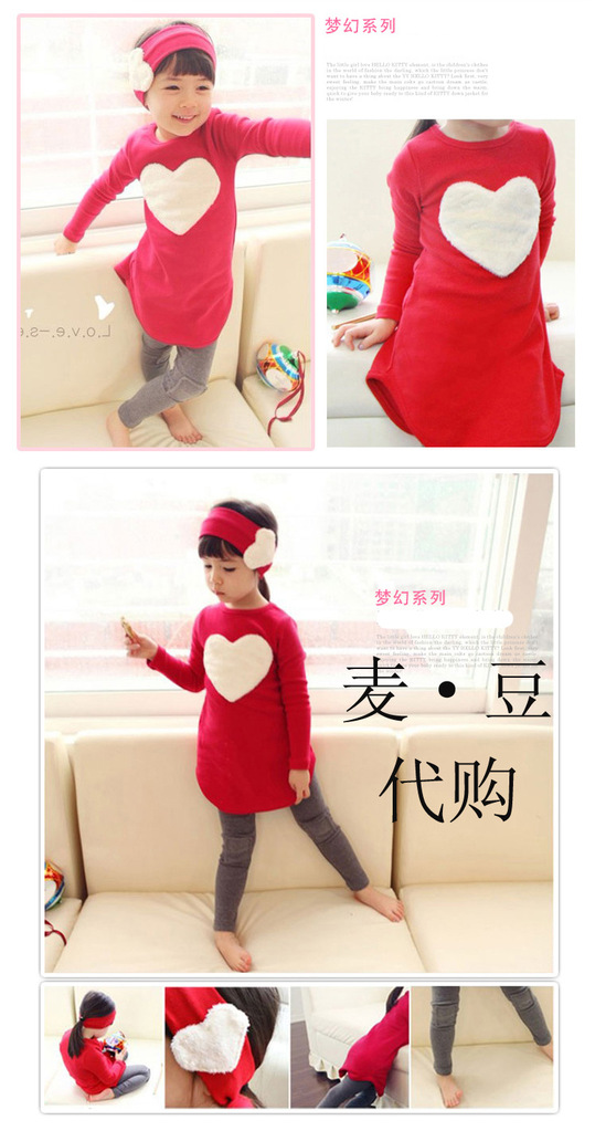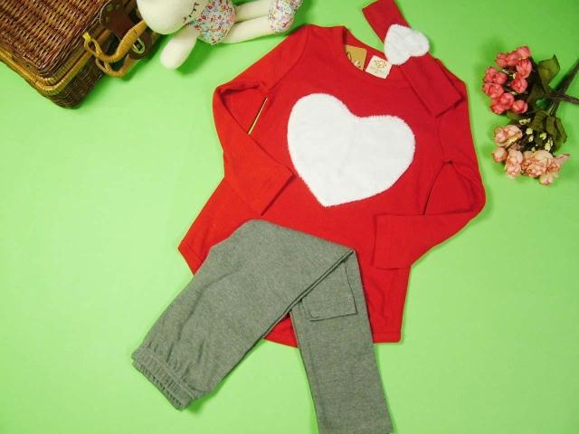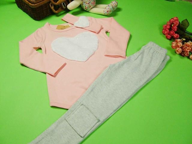 【廠家直銷】2013春裝韓版新款愛心款女童三件套裝上衣打底褲發(fā)箍