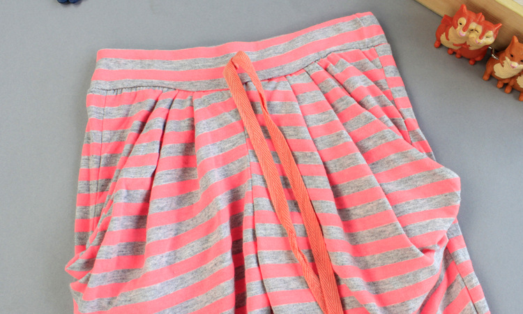 R4K 2013夏款 皮猴西西原創(chuàng)經(jīng)典條紋腰間系帶裝飾休閑哈倫褲