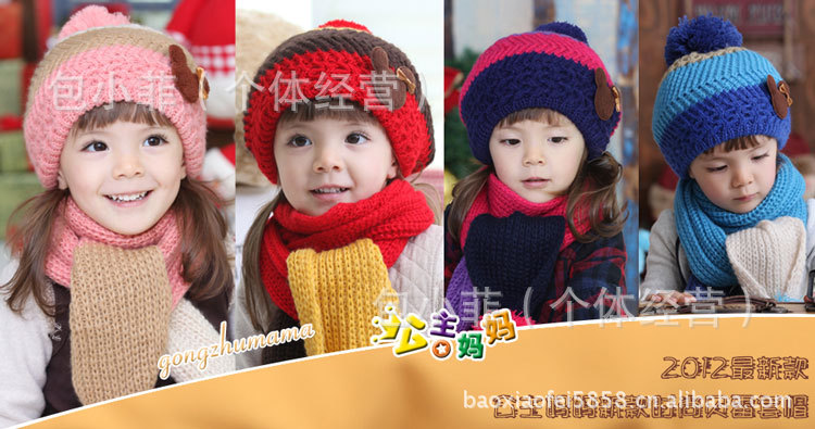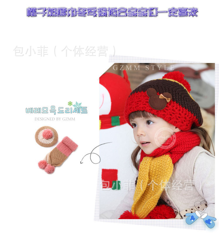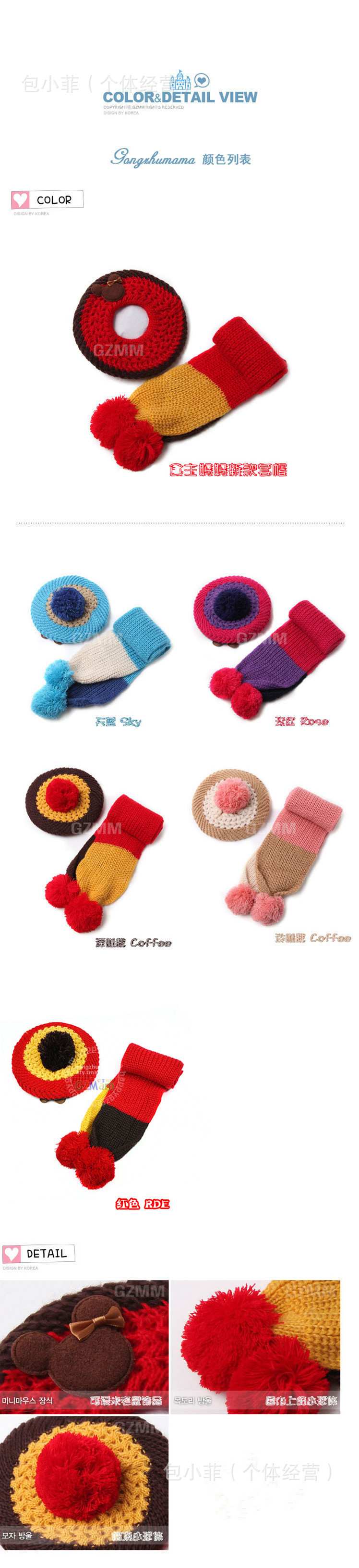 MZ794韓版帽 公主媽媽米奇貝雷帽 秋冬帽圍脖針織帽圍巾套裝 批發(fā)