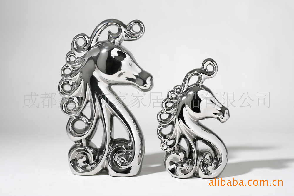 電鍍擺件陶瓷馬頭雕塑藝術擺件(新款)