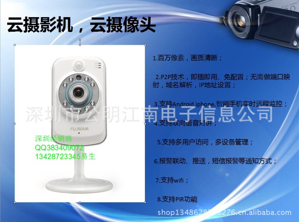 產(chǎn)品型號:富視康云攝像機FI-321,適用于工廠企業(yè)辦公樓,家庭居家,小型商鋪等全天候云監(jiān)控。
