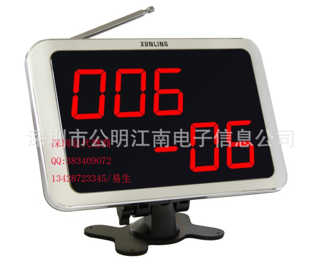 產(chǎn)品型號(hào):迅鈴呼叫器接收機(jī)APE1800,三位數(shù)顯示,帶語(yǔ)音報(bào)號(hào)和12種音樂(lè)提示音。后面數(shù)字表示服務(wù)內(nèi)容代碼:06表示服務(wù),08表示結(jié)帳,01表示點(diǎn)餐,02表示酒水。