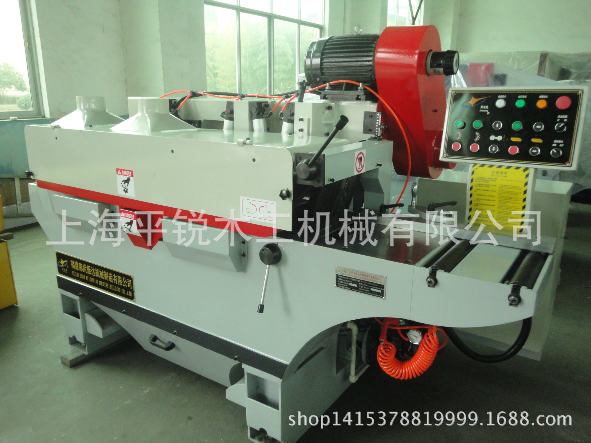 該機(jī)床為上、下雙鋸軸結(jié)構(gòu),鋸路窄,經(jīng)濟(jì)效益顯著。外形美觀、結(jié)構(gòu)緊湊、主軸結(jié)構(gòu)合理、制作精度高,調(diào)整更換鋸片方便,操作簡(jiǎn)易。送料輥筒布置為上五組(支力輥,采用氣動(dòng)壓緊,壓力均衡。)下四組(動(dòng)力輥),送料強(qiáng)勁平穩(wěn),輥距緊湊。工作臺(tái)面均鍍硬鉻,表面具有較高的硬度和耐磨性,且經(jīng)過(guò)平磨拋光,有效地降低了工件與臺(tái)面的摩擦力,加上特制齒形的鍍硬鉻的上、下送料輥輪,使送料更順暢,延長(zhǎng)了臺(tái)面及送料輥輪的使用壽命。本機(jī)設(shè)有加水裝置,使鋸片能得到充分有效的冷卻,極大地延長(zhǎng)了鋸片的使用壽命。送料前端設(shè)有上、下止逆裝置,可有效地防止或降低工件及木屑彈出傷害人體的危害。