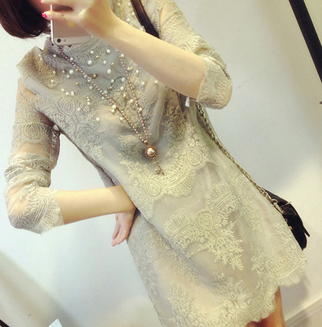 面 料高檔優(yōu)質蕾絲面料款 式蕾絲連衣裙特 點 春秋外穿冬天打底,可以穿三季的蕾絲連衣裙,高檔優(yōu)質蕾絲面料,做工精細,高端定制,優(yōu)雅 名媛氣質 若隱若現(xiàn) 非常修身 小立領氣質名媛風 中長款蕾絲衫下面可以 配緊身打底褲,超親膚哦~小性感 小女人哦!必須自留款! 身高體重三圍尺碼