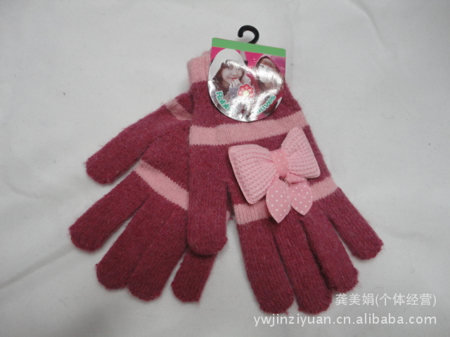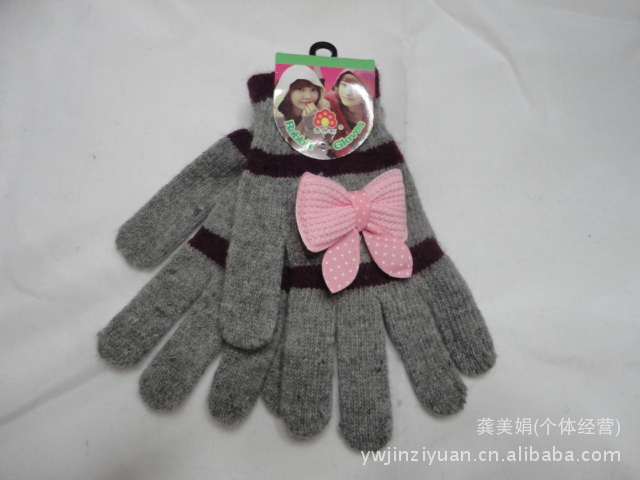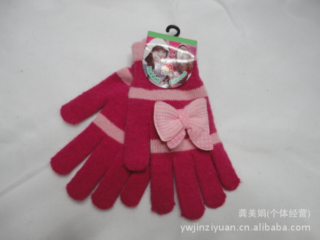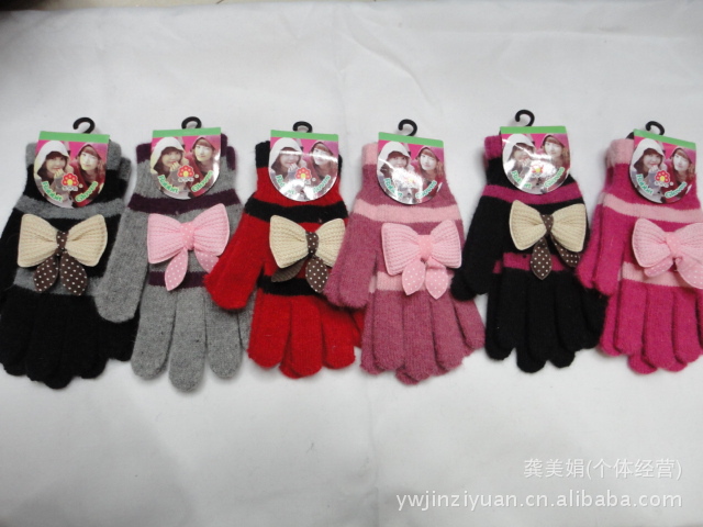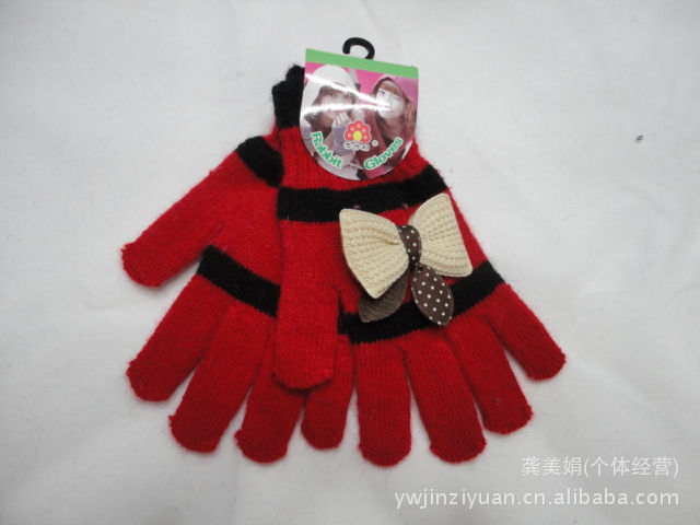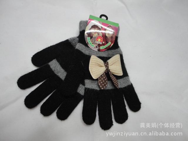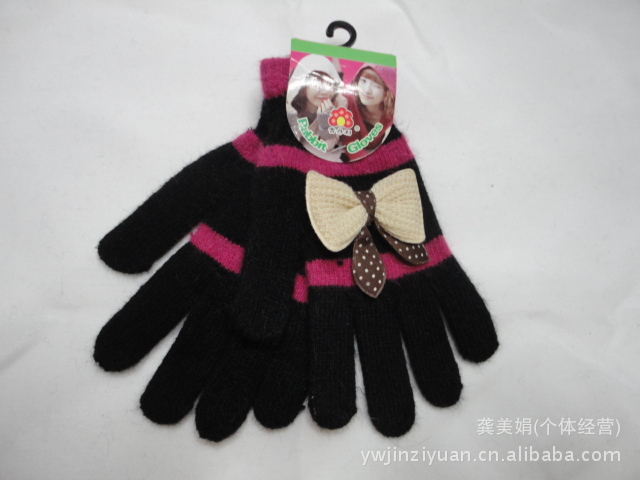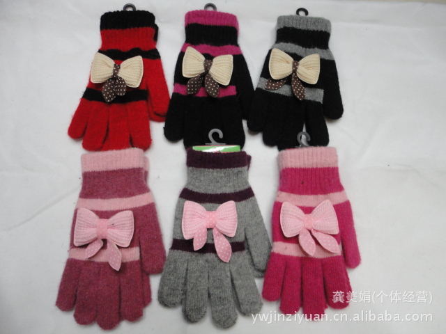 廠家直銷韓版時(shí)尚兔毛條紋帶蝴蝶結(jié)全指手套 針織手套 魔術(shù)手套