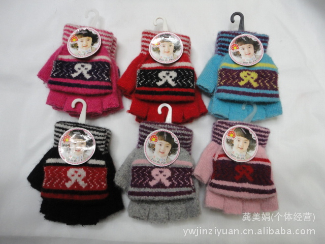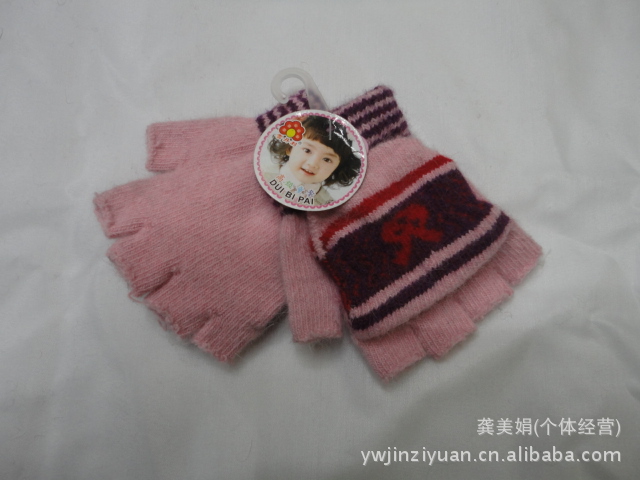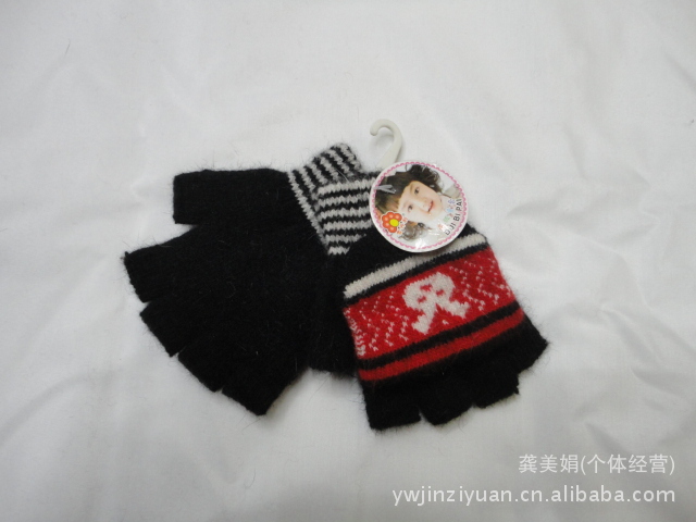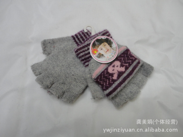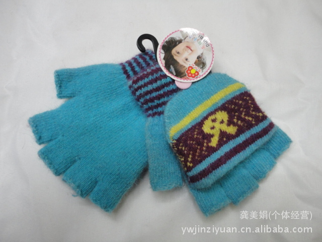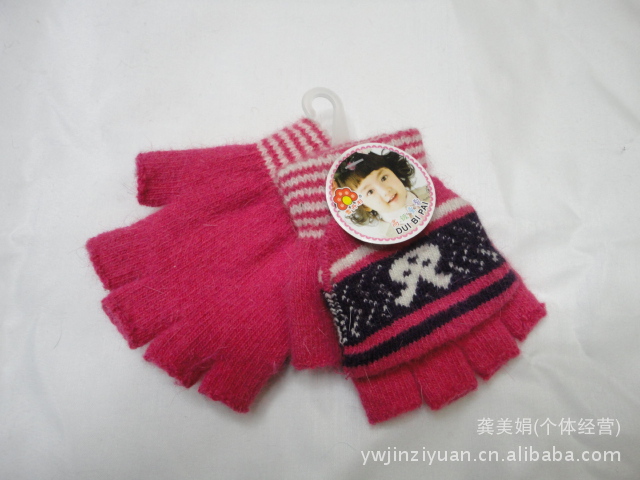 韓版時(shí)尚兔毛提花小孩半指翻蓋手套 針織手套 魔術(shù)手套