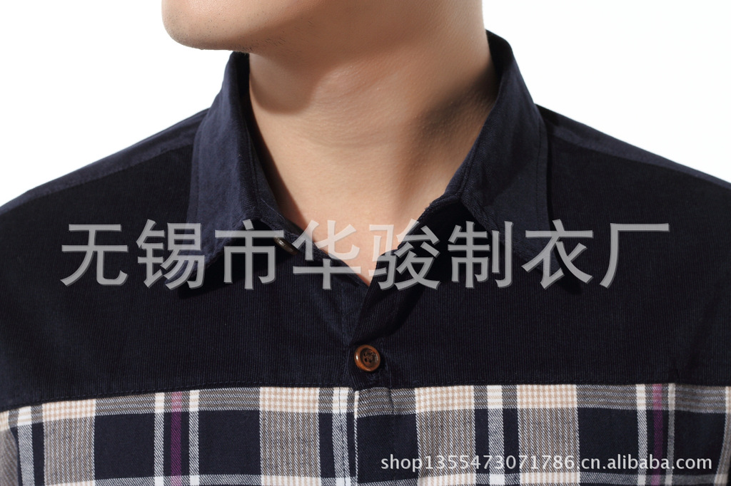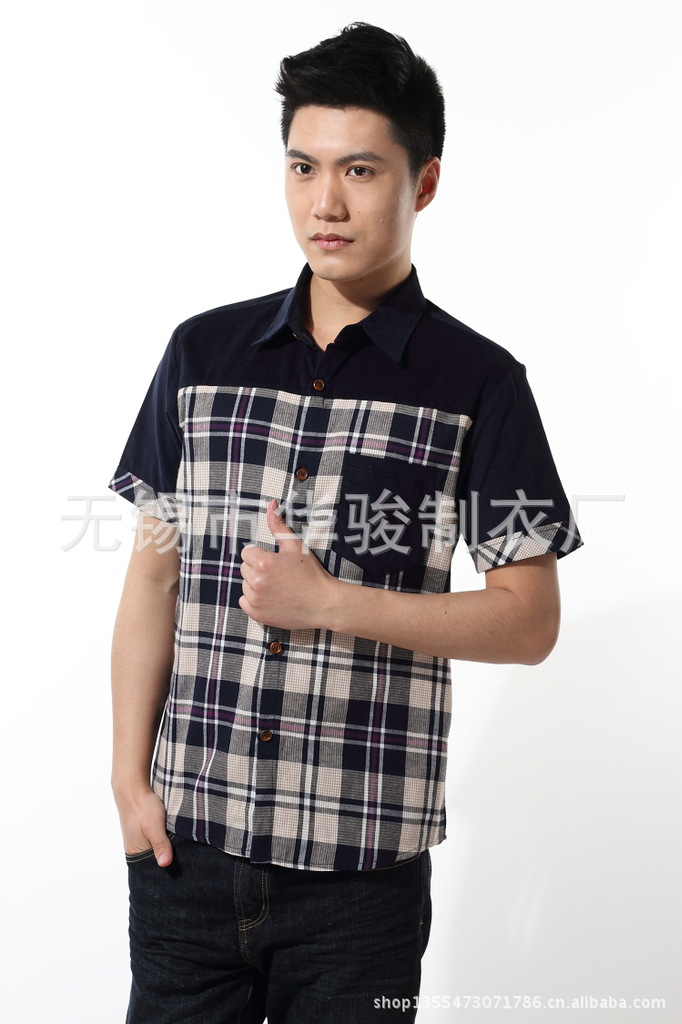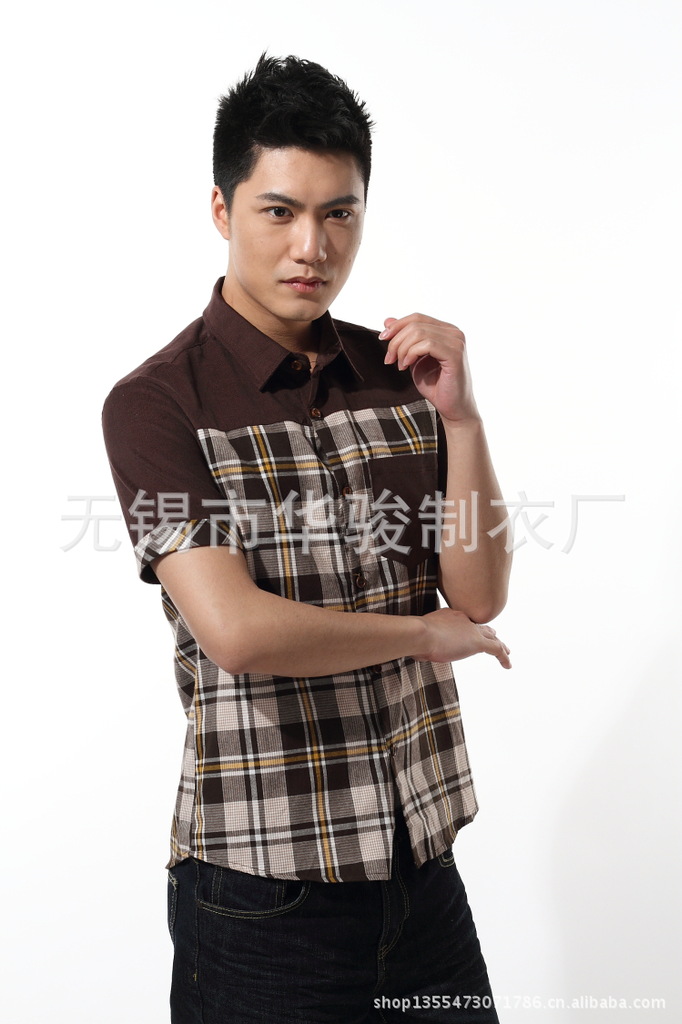 2013精品夏季男裝燈芯絨襯衫男短袖男士格子襯衫韓版修身襯衣