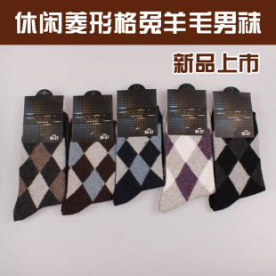 廠家批發(fā)源通2013秋冬新品男襪兔羊毛菱格商務休閑中筒襪子批發(fā)城3.8