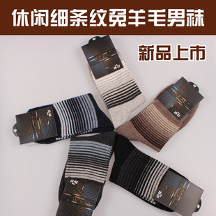 廠家批發(fā) 2013秋冬新品男襪 休閑商務橫條兔羊毛中筒襪 長邦襪子3.15