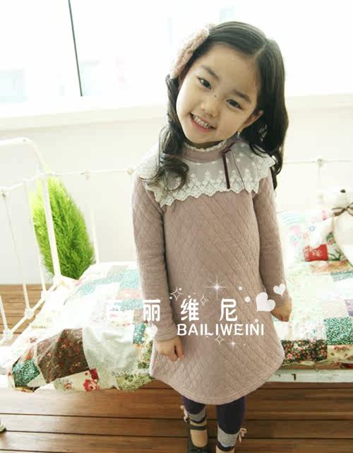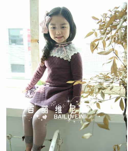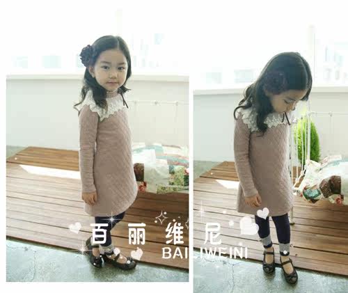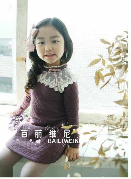 4076 韓版童裝/批發(fā)廠家直銷(xiāo)11冬款新款花邊連衣裙