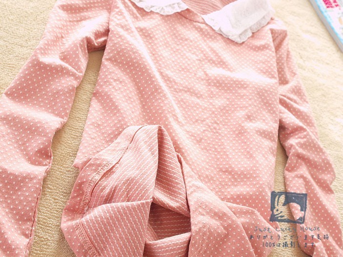 1.寶貝名稱:秋季必備打底單品 海軍風翻領(lǐng)圓點點棉長袖Tee粉色